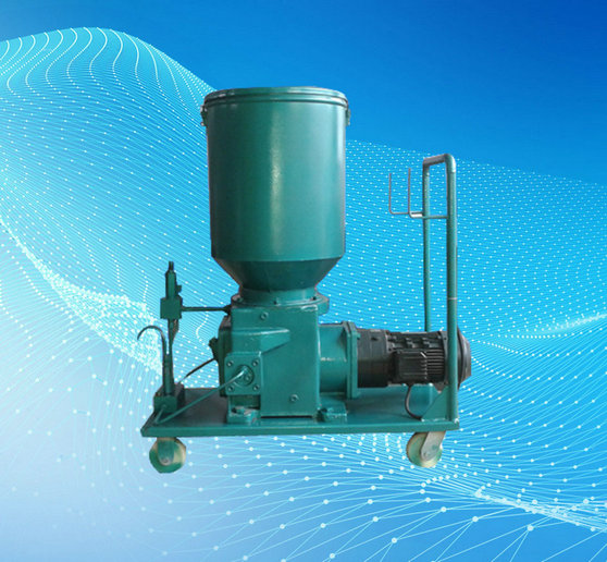 当滑叉左移至极限位置后开始反向运动时,活塞1在滑叉推动下,将进油口关闭并继续向右运动对油加压,将活塞2顶至出油口右侧把腔内油脂经过出油口打入管路。这样两组活塞循环往复,交替吸压将油源源不断的经过管路注入设备,滑叉在往复运动的同时,通过与其联动的拨柄带动桶内压油盘转动,将桶内油脂压入泵体腔内。